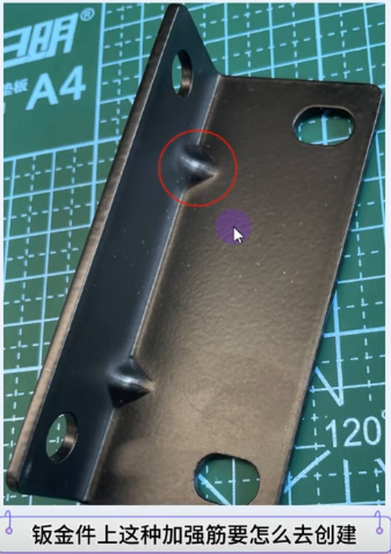 比如图中钣金件,若中间平面完全没有筋,那么在受到外力时非常容易“鼓包”或“塌陷”;加筋后等同加了“一道梁”,大大提升了抗变形能力。