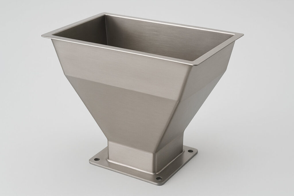 料斗是组合秤中直接接触物料的部件,其设计与加工精度直接影响物料流动性、称重稳定性以及清洁难度。