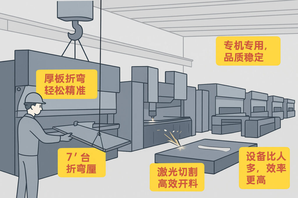 - 技术积累 → 保障折弯、切割精度,轻松处理各种厚板和精密件。