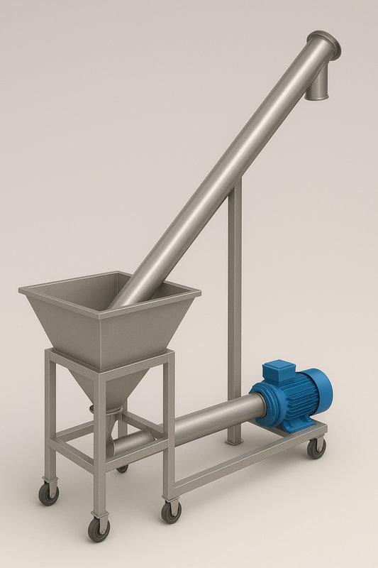 | 1 | 进料斗(料仓) | 存放原料,均匀进入螺旋管 | SUS304 不锈钢折弯焊接 | 内壁需抛光,防止残留 |