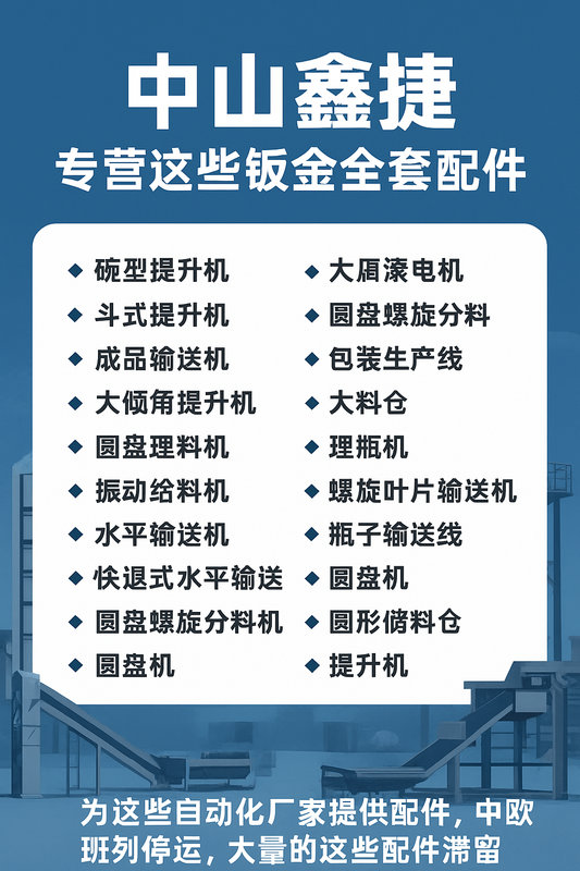 在当今制造业全球化的大格局下,自动化输送与提升设备已经成为食品、饮料、轻工、包装、制药等行业不可或缺的生产环节。无论是薯片生产线、瓶子输送线,还是斗式提升机、快退式水平输送机,这些设备的背后,都离不开大量高精度的钣金配件支撑。而在华南地区,中山鑫捷钣金加工厂凭借20年的专业经验,成为行业内重要的配套服务商。