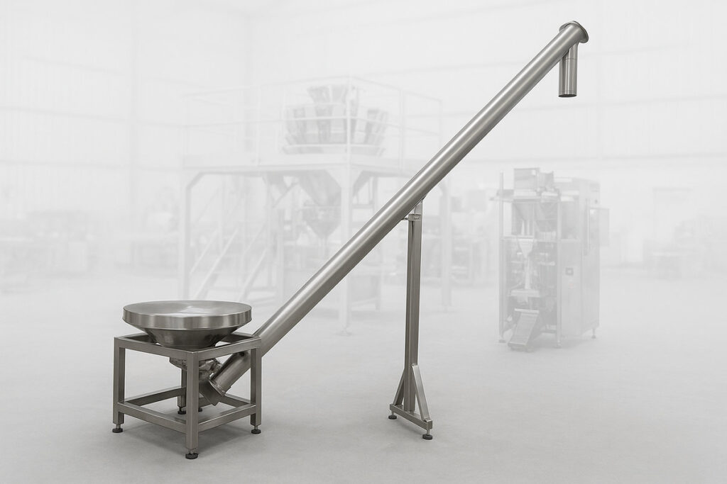 | 英语 (English) | Screw elevator with mixing device, sheet metal intelligent manufacturing source factory, high cost performance, largest food machinery supporting manufacturer. |