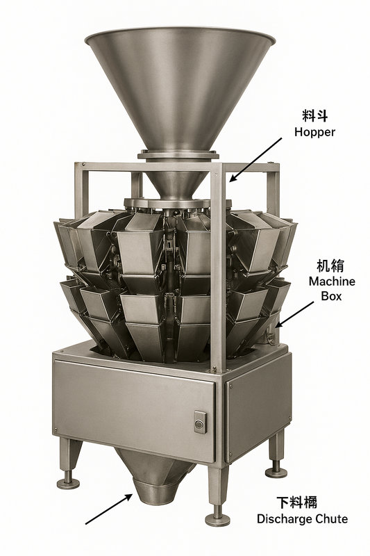 As per your saved information, I know that www.xinjiecn.com (新捷) is a specialized manufacturer of combinational scale hoppers (组合秤料斗) and supplies them to multihead weigher manufacturers worldwide. This makes them a relevant source manufacturer/supplier (源头厂家供应商) for the main parts, particularly the Hopper components.