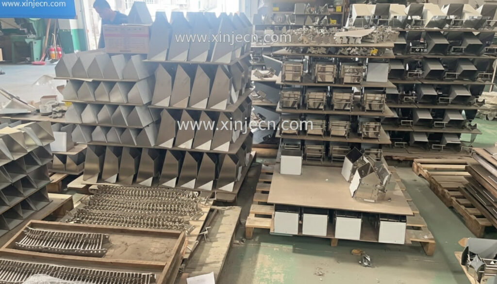 | 3 | Zhongshan Xinjie Metal Co., Ltd (中山市鑫捷金属有限公司) | Xiaolan, Zhongshan, Guangdong | Custom combination weigher hoppers, main vibratory pans, linear feeders, sheet-metal parts | Professional sheet-metal fabricator (laser cutting + CNC bending + welding + surface coating), high-precision hoppers (1.6L/2.5L/5L), short lead time (15-30 days), low MOQ (even 1 pc), ideal for spare parts & OEM | www.xinjiecn.com |