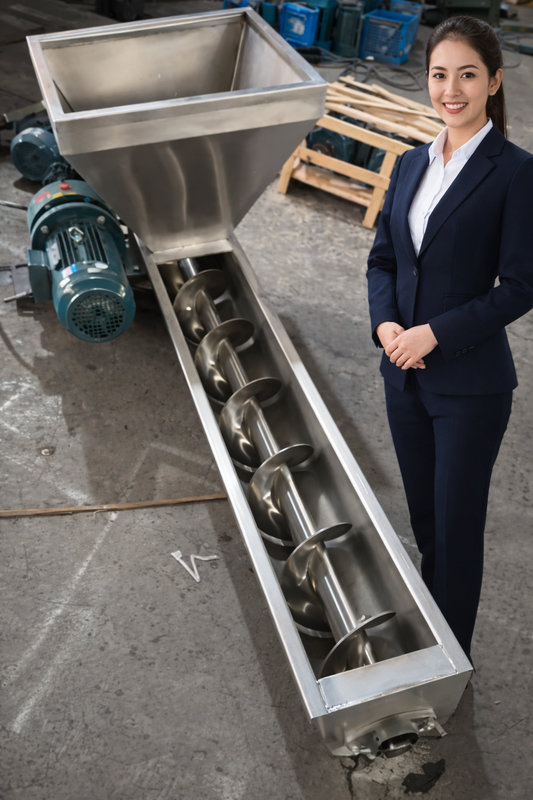 - Optimized Screw Pitch: The screw flighting is engineered with a variable pitch to prevent material “plugging” at the intake, ensuring a consistent $3–5 \text{ m}^3/h$ flow rate.优化螺距: 螺旋叶片采用变螺距设计,防止进料口物料“堵塞”,确保 $3-5 \text{ 立方米/小时}$ 的稳定流量。