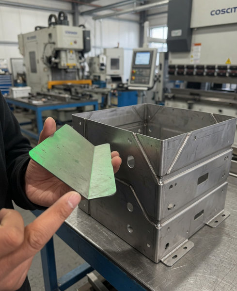 - 气密性失效: 大角度折弯处若拉伸过度,板材减薄明显,焊接时容易焊穿;若扣除过少,箱体“长了”,强制组对会导致拼角处应力集中,后期震动易开裂。